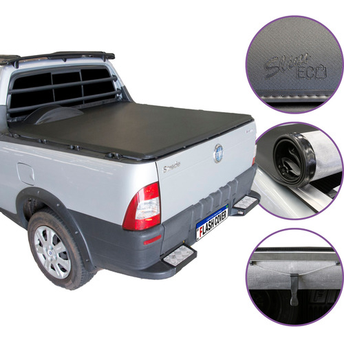 - Fitas de travamento para segurar a lona enrolada com segurança.