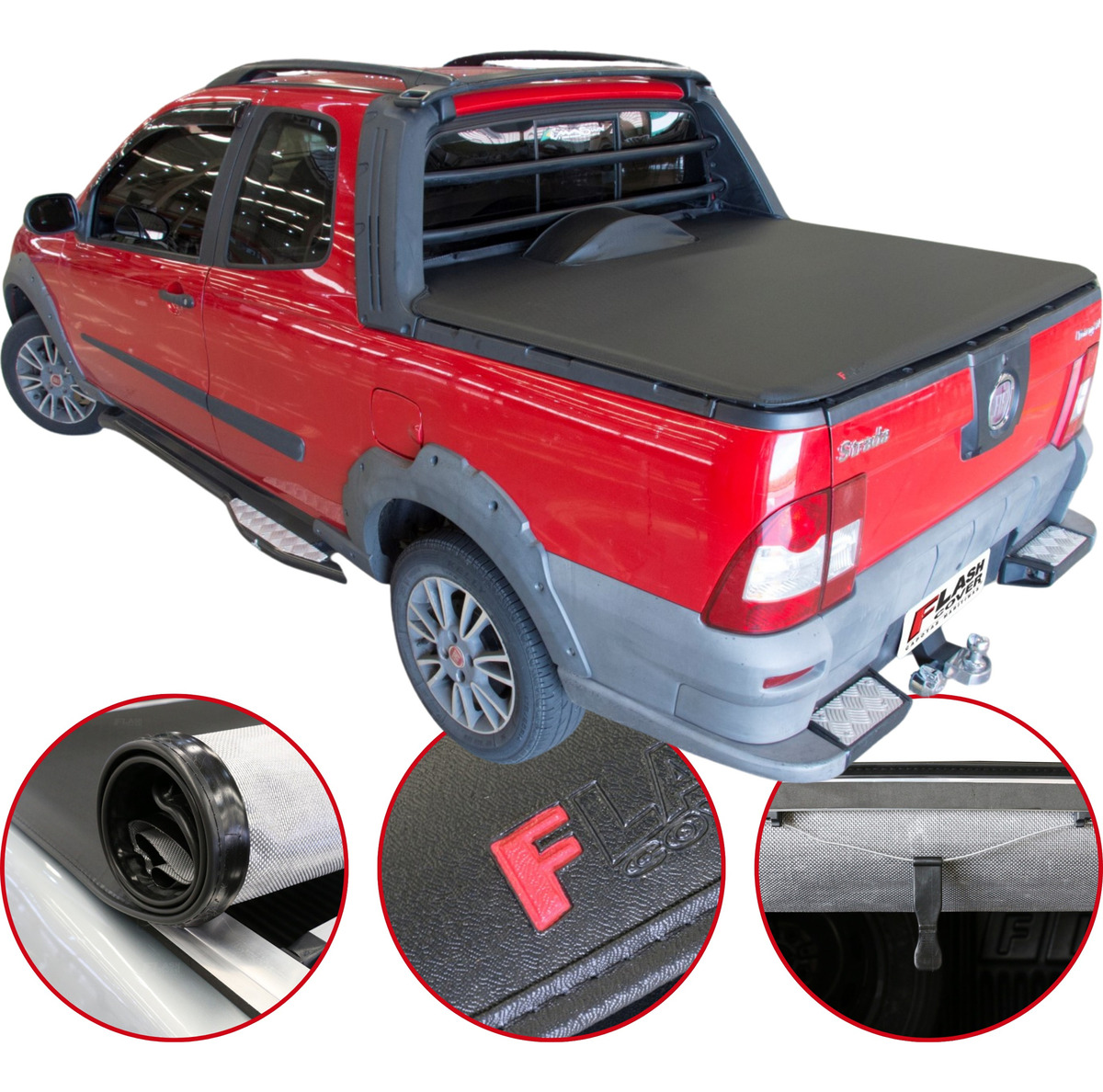 A Capota Marítima da Flash Cover reúne as principais qualidades da linha Flash Force, líder de mercado. Produzida em lona vinílica de PVC com trama 8x8 de poliéster e acabamento em debrum de lona, oferece durabilidade, resistência ao desgaste e proteção UV, mantendo a boa estética da picape. O sistema de acionamento conta com puxadores anatômicos, tensores encurvados para evitar acúmulo de água e fixação em alumínio com borracha E.V.A., garantindo proteção da caçamba, melhora na aerodinâmica e um acabamento superior.