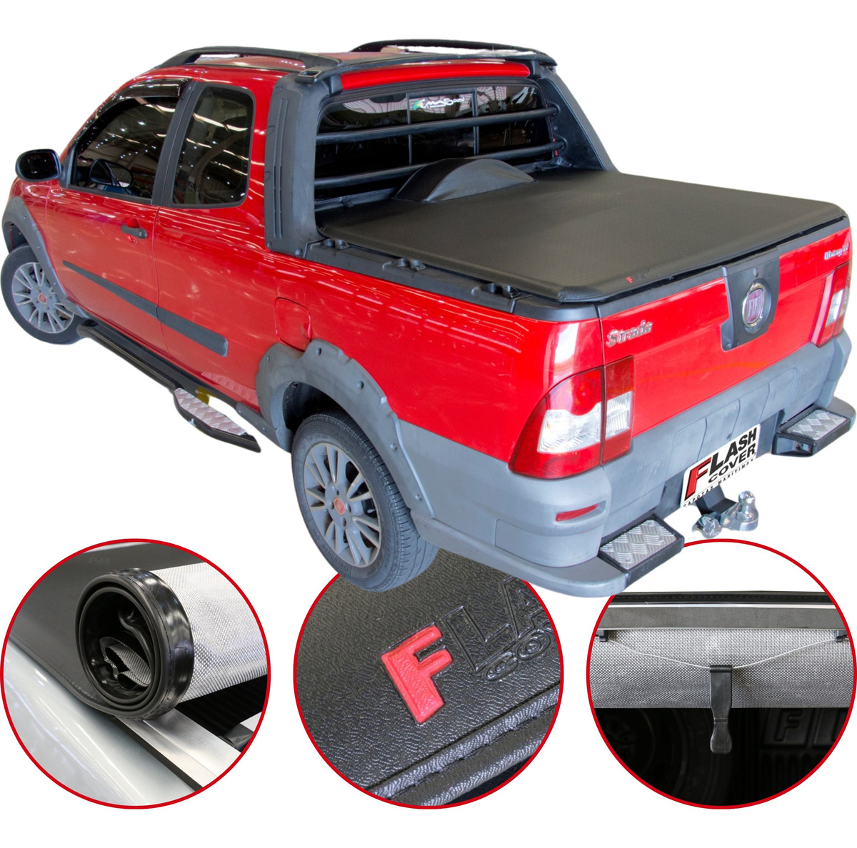 A Capota Marítima da Flash Cover reúne as principais qualidades da linha Flash Force, líder de mercado. Produzida em lona vinílica de PVC com trama 8x8 de poliéster e acabamento em debrum de lona, oferece durabilidade, resistência ao desgaste e proteção UV, mantendo a boa estética da picape. O sistema de acionamento conta com puxadores anatômicos, tensores encurvados para evitar acúmulo de água e fixação em alumínio com borracha E.V.A., garantindo proteção da caçamba, melhora na aerodinâmica e um acabamento superior.