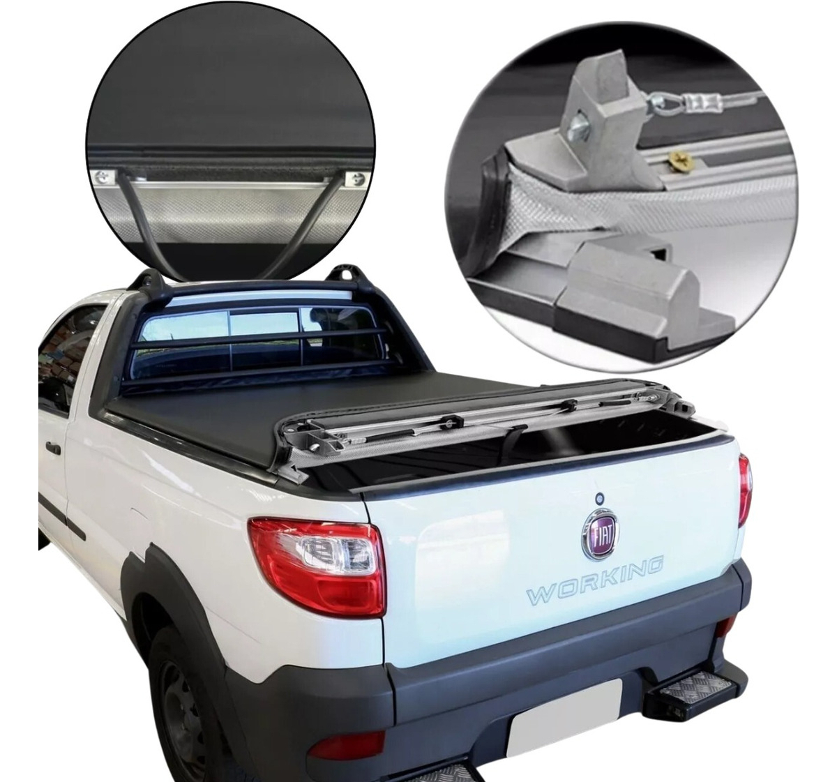 - Protege a caçamba contra sol, chuva, poeira e pequenos impactos, além de valorizar a estética da pick-up;