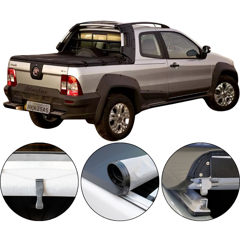 Após enrolar a lona é possível manter a mesma enrolada, devido as duas fitas de travamento que a capota possui, tudo isso de forma simples e fácil.