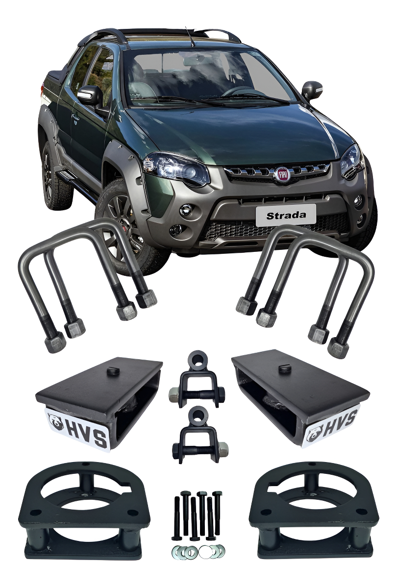 ***LANÇAMENTO*** Kit Lift 100% Nacional! Trabalhamos a 12 anos no mercado desenvolvendo o melhor para o nosso consumidor. DESCRIÇÃO DO PRODUTO: Peças desenvolvidas no mais alto padrão de qualidade e resistência. Peças em pintura eletrostática - Garantia de 3 anos contra defeito de fabricação - Indicamos que seja feita a instalação sempre em oficina especializada e de confiança. - Todas as peças são Plug in play APLICAÇÃO STRADA 1.4 / 1.6 / 1.8 ANO 1998 - 2019 ( EXCESSÃO DA MODELO NOVO 2020 ) LIFT DIANTEIRO 45mm (4,5cm altura (podendo variar conforme a atuação da mola do veiculo) 2 Calços dianteiro 45mm (4,5 cm ) 6 Parafusos LIFT TRASEIRO 40 MM ( +/- 4 CM ) 2 Calço traseiro em aço 1020 com reforço central 40 mm ( 4 cm ) 4 Grampos em aço 220 mm 8 Porcas dupla galvanizadas 2 Alongador de amortecedor traseiro