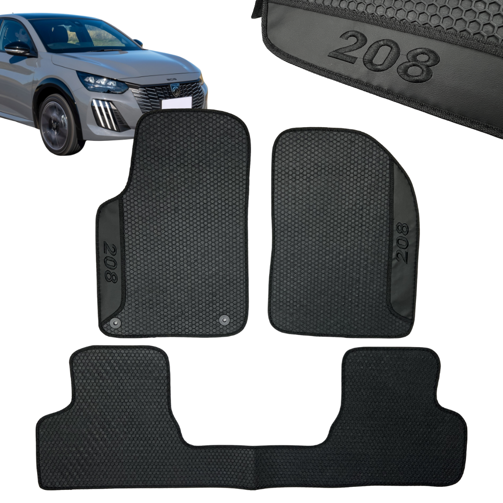 Tapete Automotivo Peugeot 208 2013 A 2026 Personalizado 3 Peças All Black
